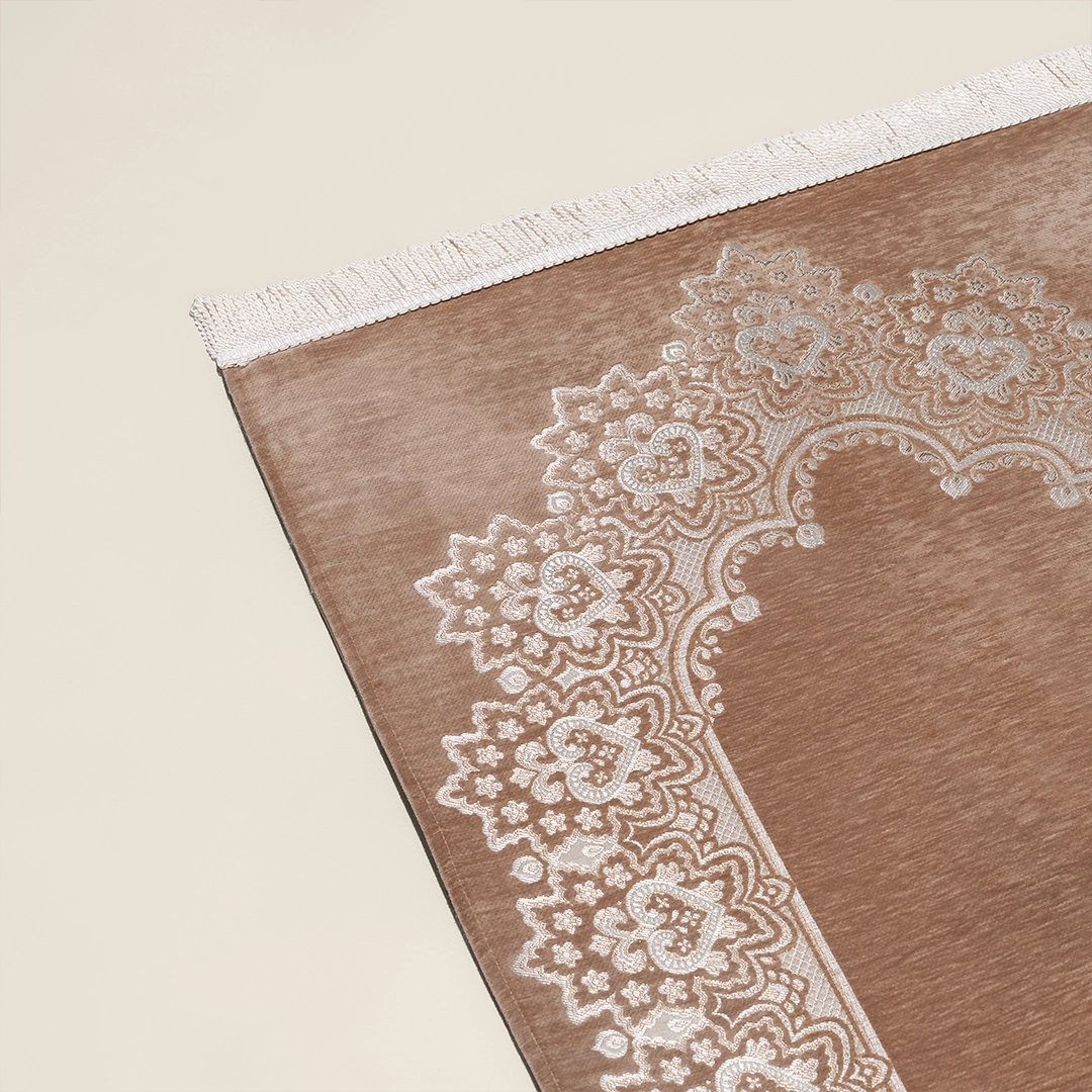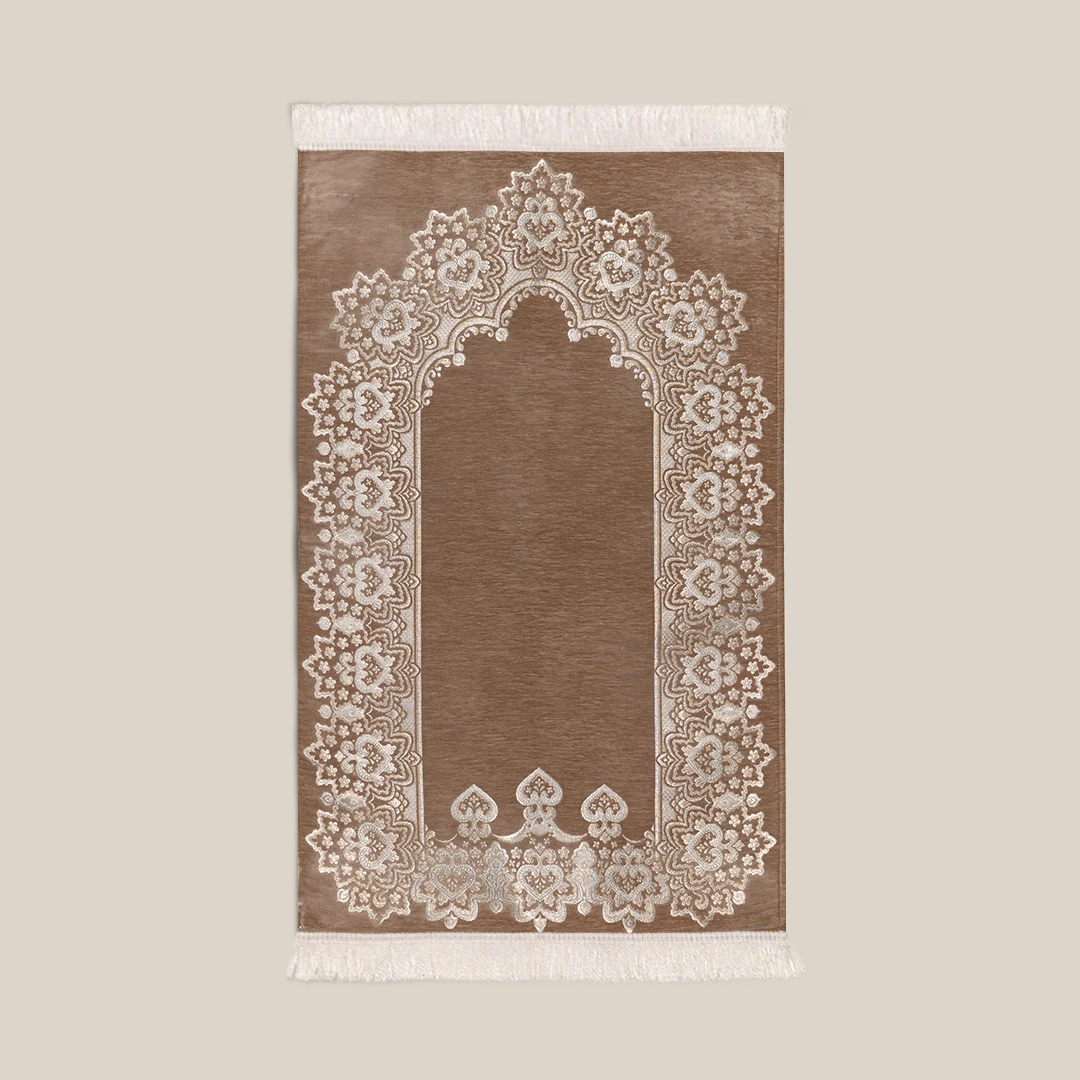 سجادة صلاة شنيل لون بيج غامق من بيتي الصغير