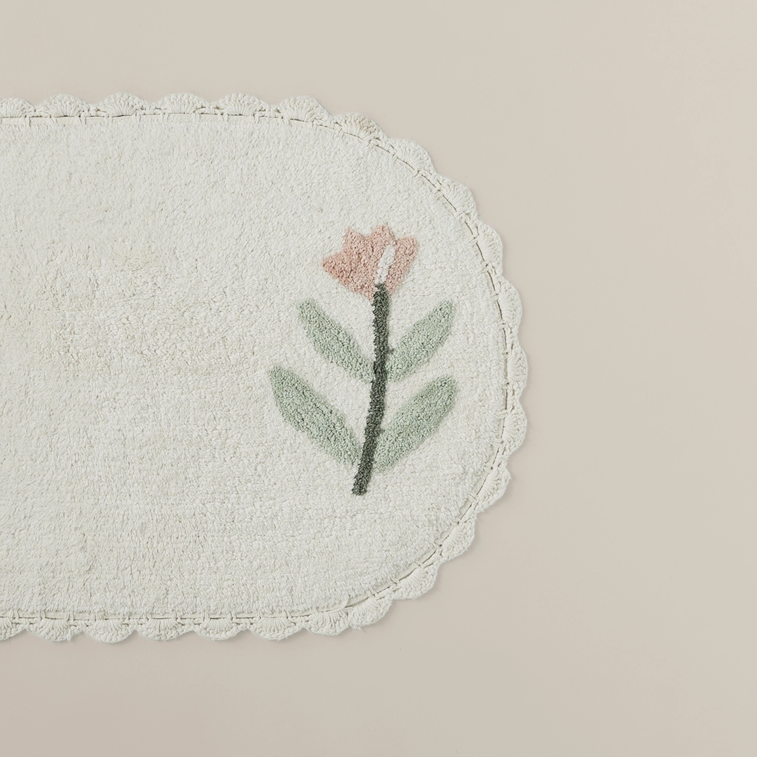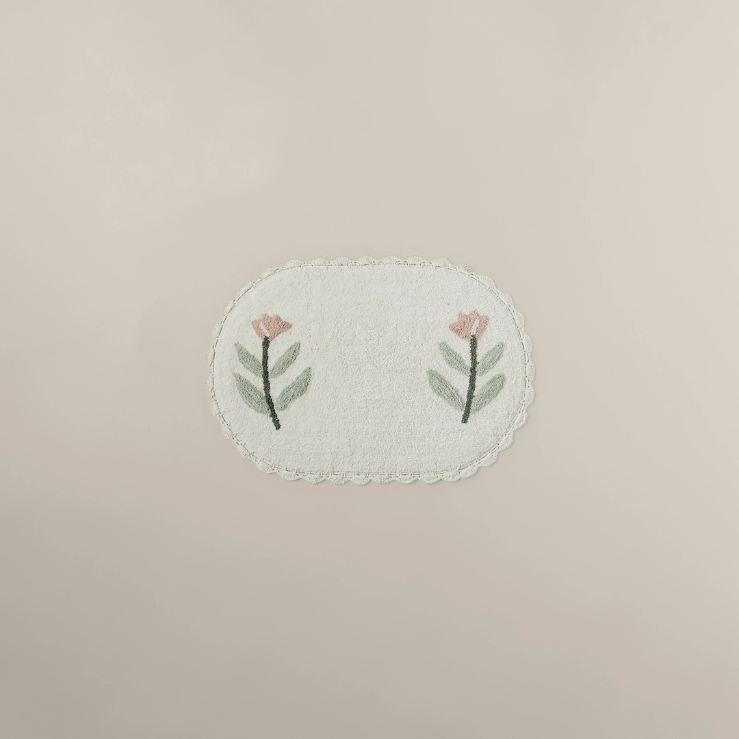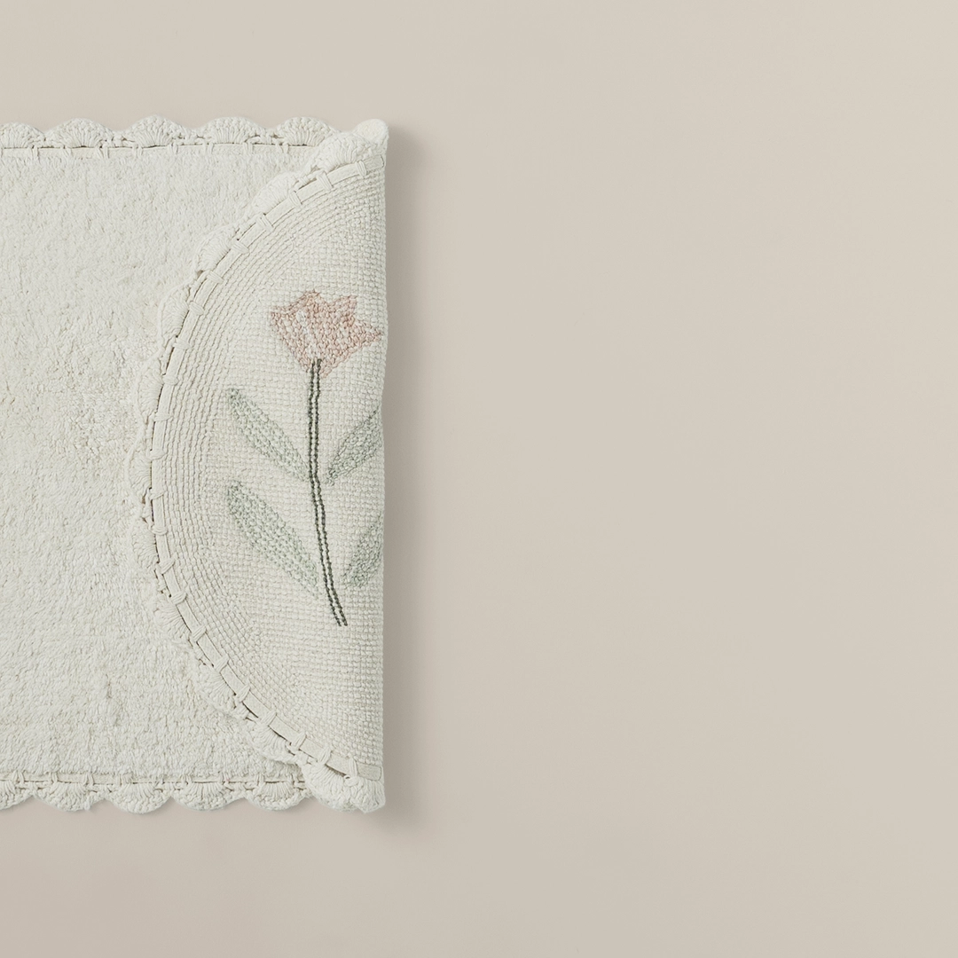 دعّاسة بيتي الصغير القطنية – بيضاء، مصنوعة من قطن ناعم وامتصاص فوري. آمنة، سهلة التنظيف، ومضادة للانزلاق… مثالية لكل حمام!