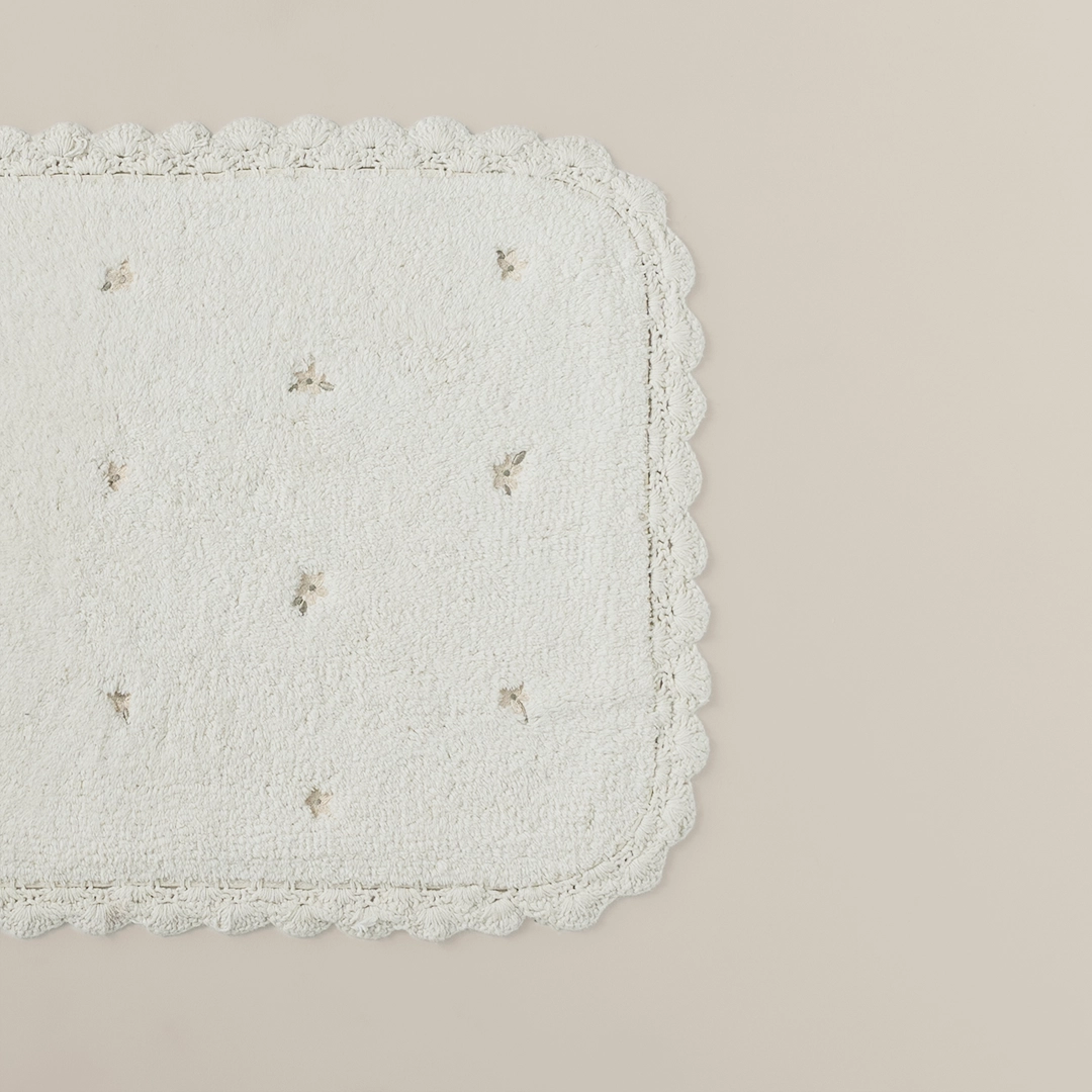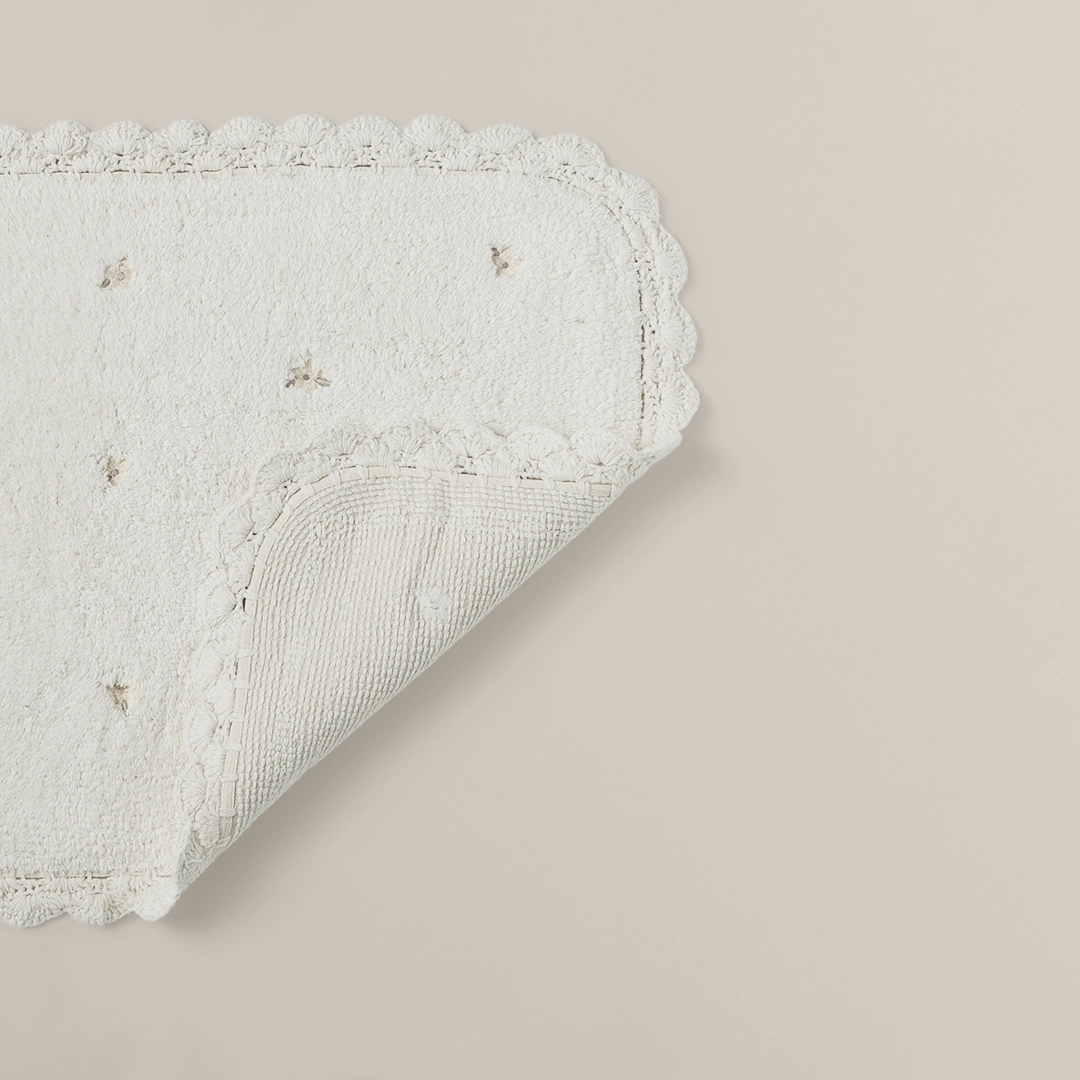 دعّاسة بيتي الصغير القطنية – بيضاء، مصنوعة من قطن ناعم وامتصاص فوري. آمنة، سهلة التنظيف، ومضادة للانزلاق… مثالية لكل حمام!