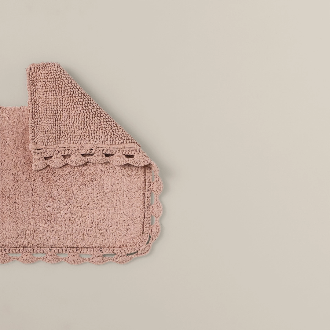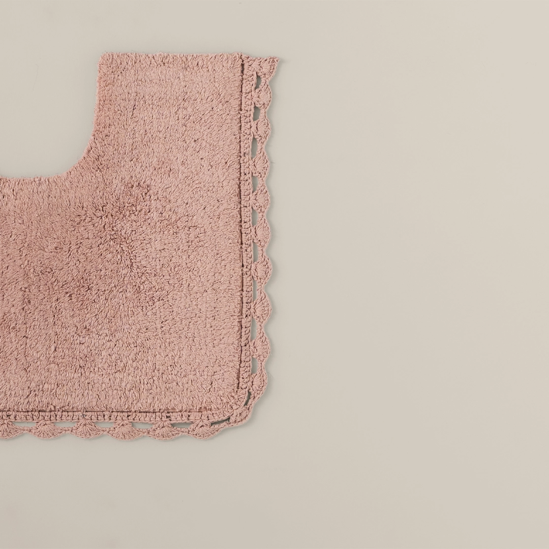 تتميز دعّاسة كرسي الحمام هذه بلونها البينك الغامق الراقي، مع لمسة كلاسيكية من أطراف الكروشيه. صُنعت من 100% قطن طبيعي لضمان النعومة الفائقة والامتصاص الممتاز، وهي مزودة بـقاعدة مانعة للانزلاق لضمان، وتتوفر بمقاس 50×60 سم.