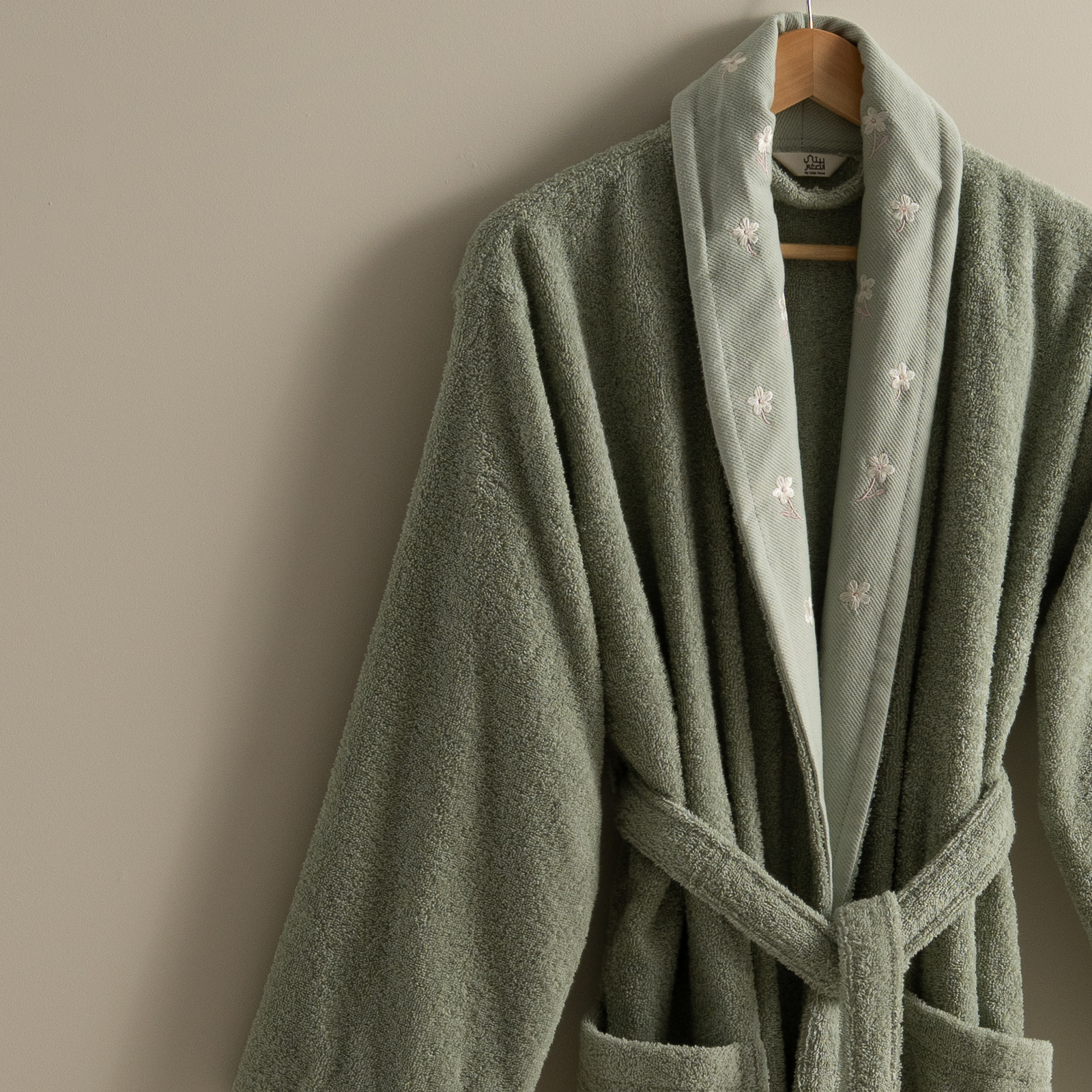روب حمام قطن مطرز أخضر بعدة مقاسات
