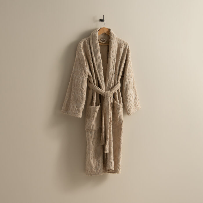 مصنوع من قطن 100% ناعم وعالي الامتصاص، بتصميم لف عملي مع حزام خصر وجيوب جانبية.