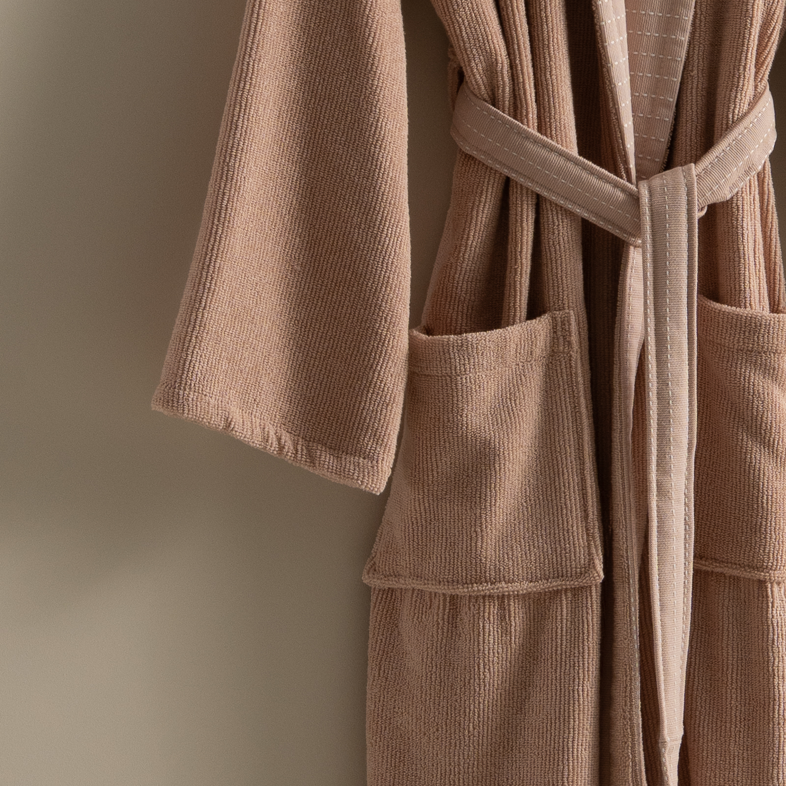 مصنوع من قطن 100% ناعم وعالي الامتصاص، بتصميم لف عملي مع حزام وجيوب جانبية.