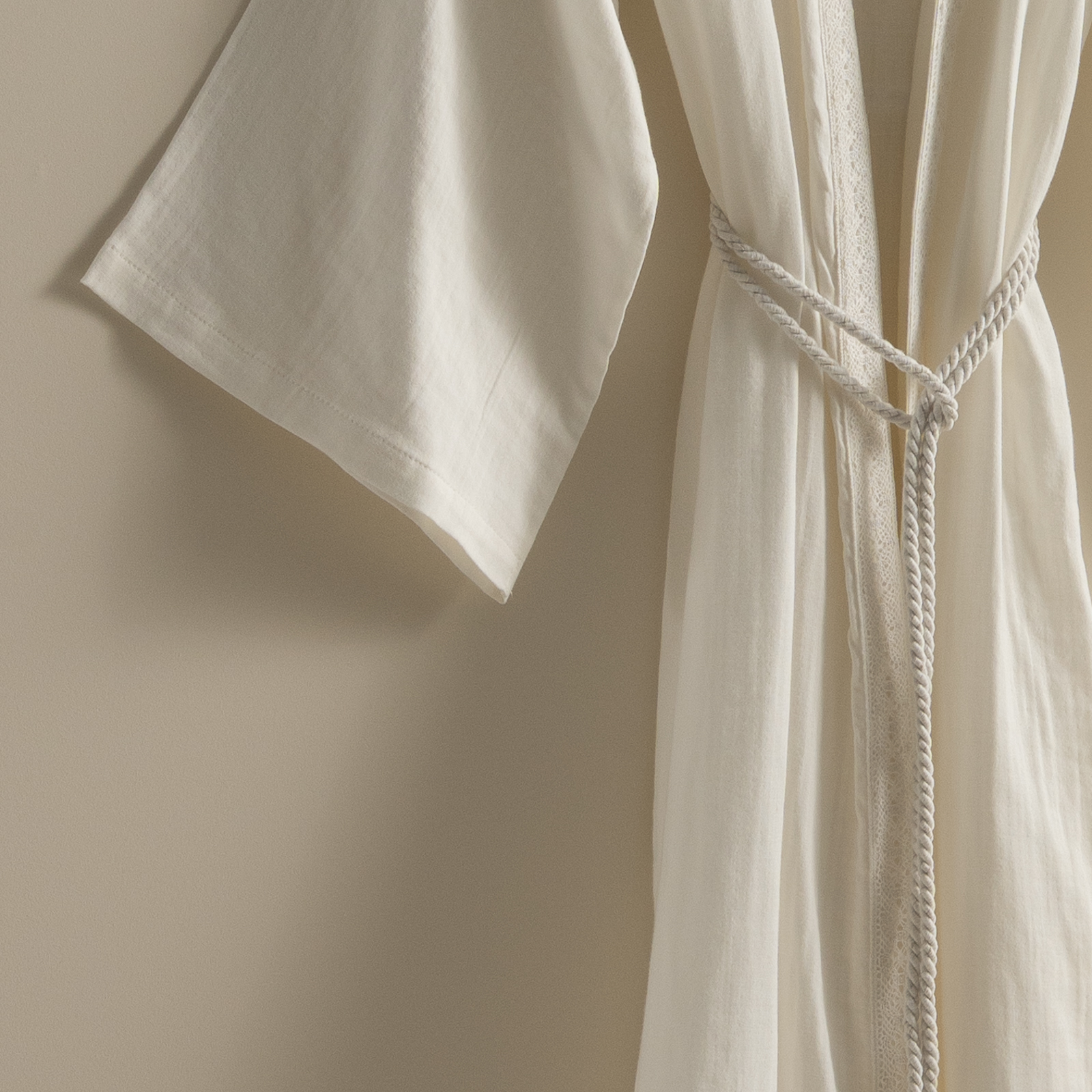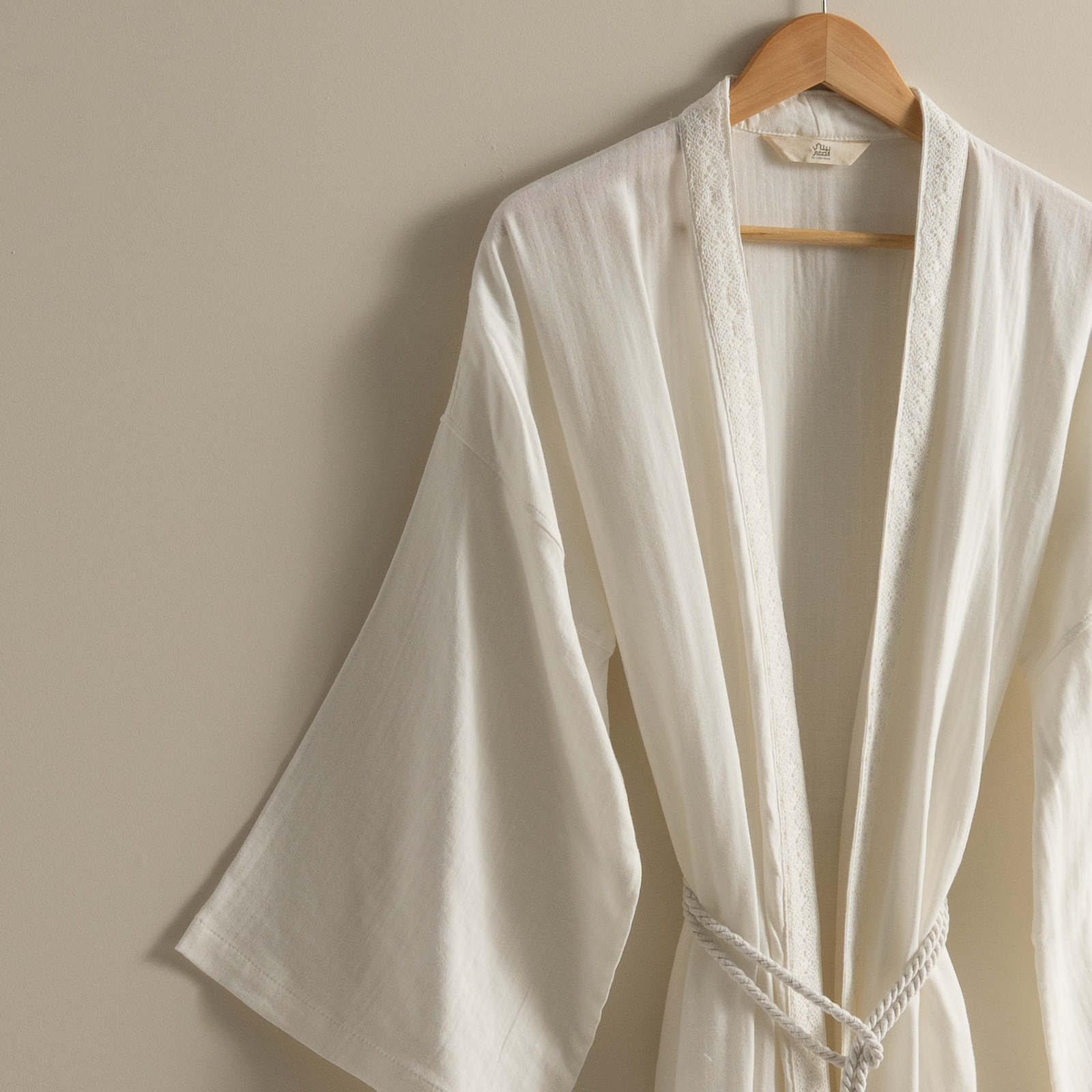 مصنوع من قطن 100% ناعم وعالي الامتصاص، بتصميم لف عملي مع حزام  وجيوب جانبية.