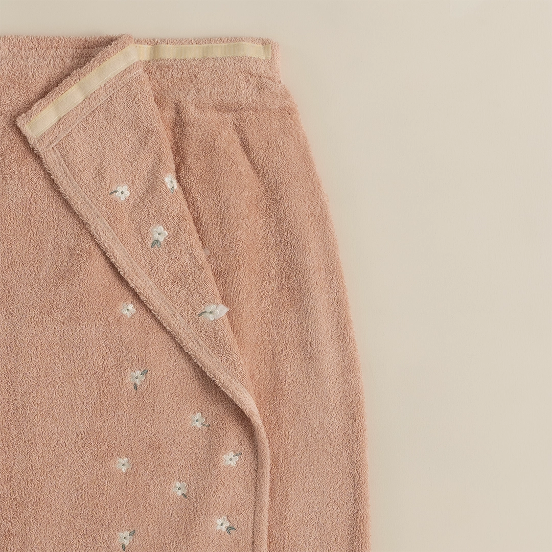 تنورة حمام قطنية فاخرة بلون بينك مزهر. رقة لا تُضاهى، امتصاص عالٍ، وتصميم فريد.