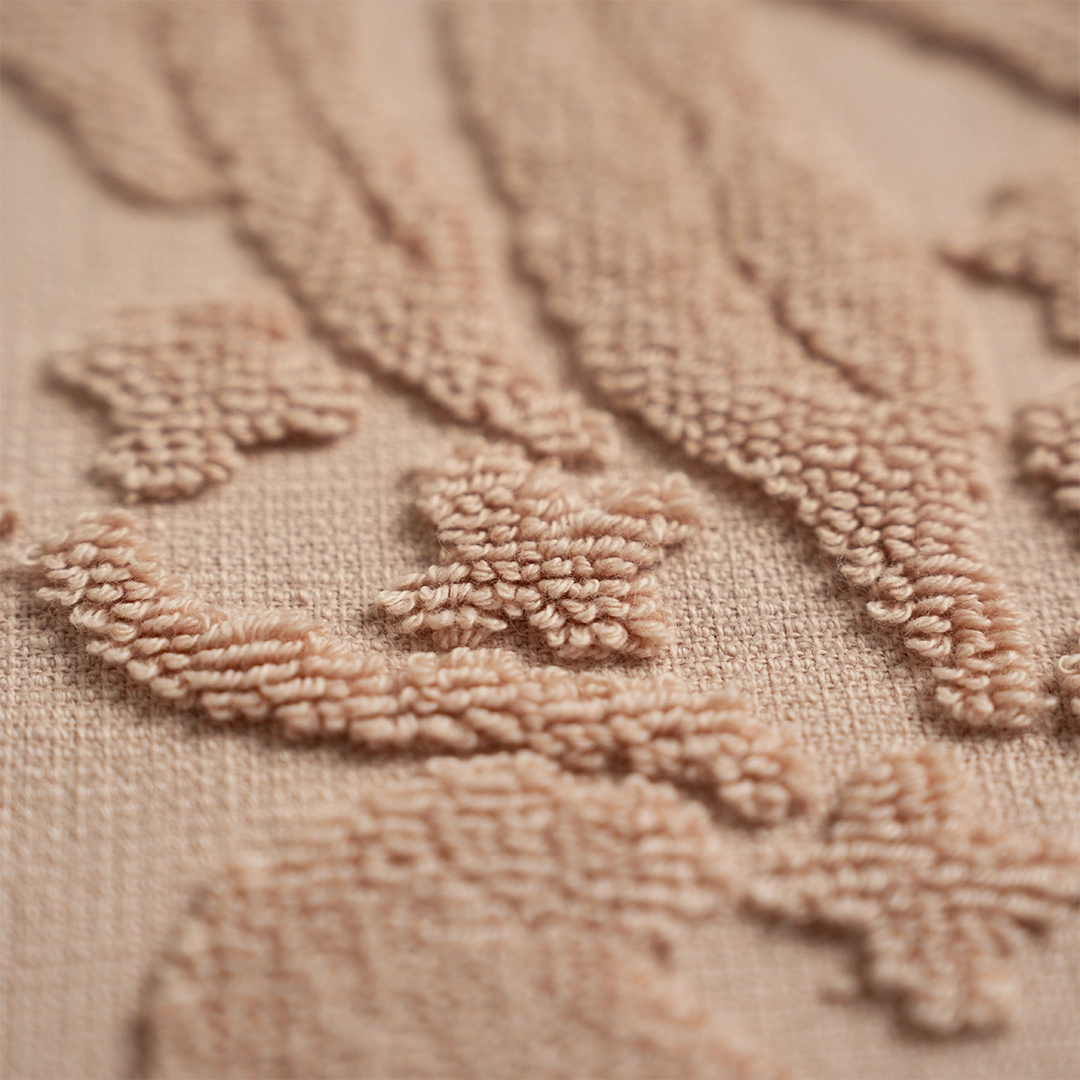 الجاكار يمنح ملمساً مزدوجاً، يجمع بين نعومة القطن الفاخر وتأثير النسيج البارز، لراحة فائقة بعد الاستحمام.