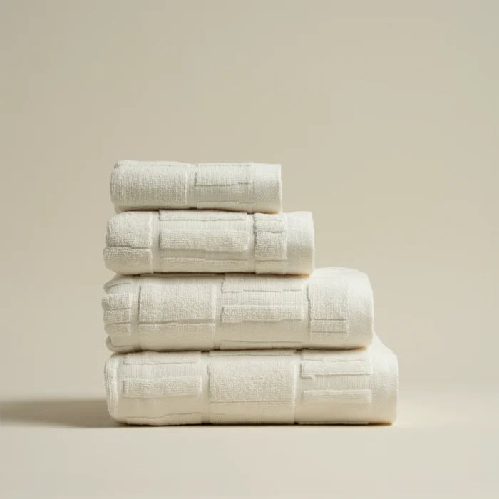 منشفة تجمع بين العملية والمظهر المتقن، بفضل تقنية الجاكار المعقدة التي تضمن ثبات النقش.