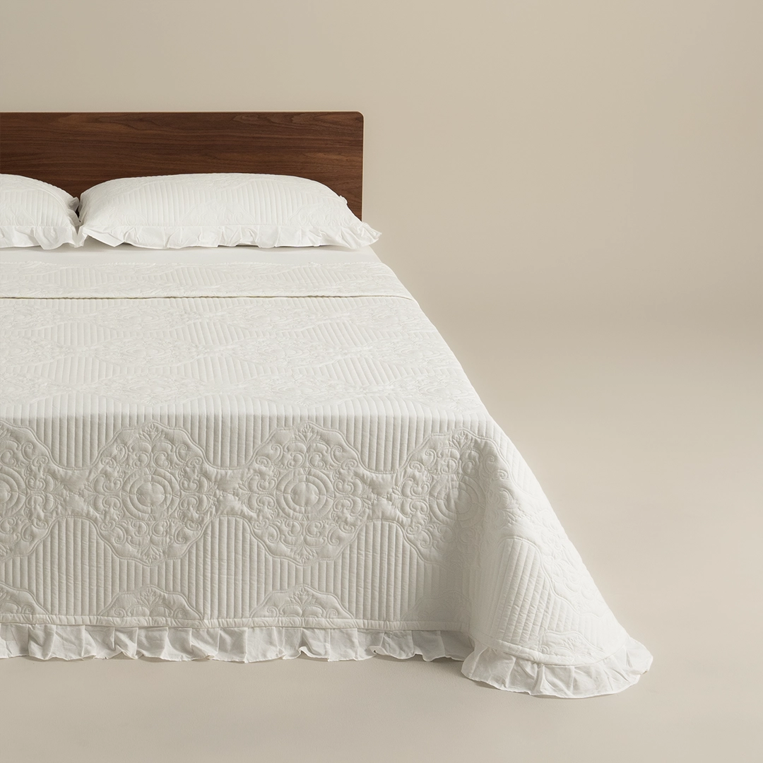 مصنوع من قماش القطن وحشوة المفرش ثابتة من المايكروفايبر.
