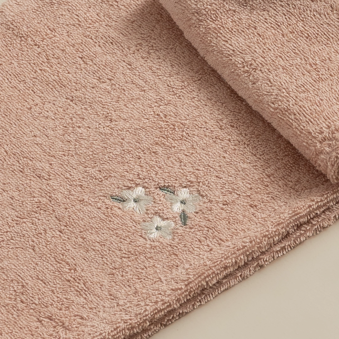 منشفة رأس قطنية مطرزة بلون بينك حالم. رقة، نعومة، وتجفيف ذكي بلمسة عصرية.
