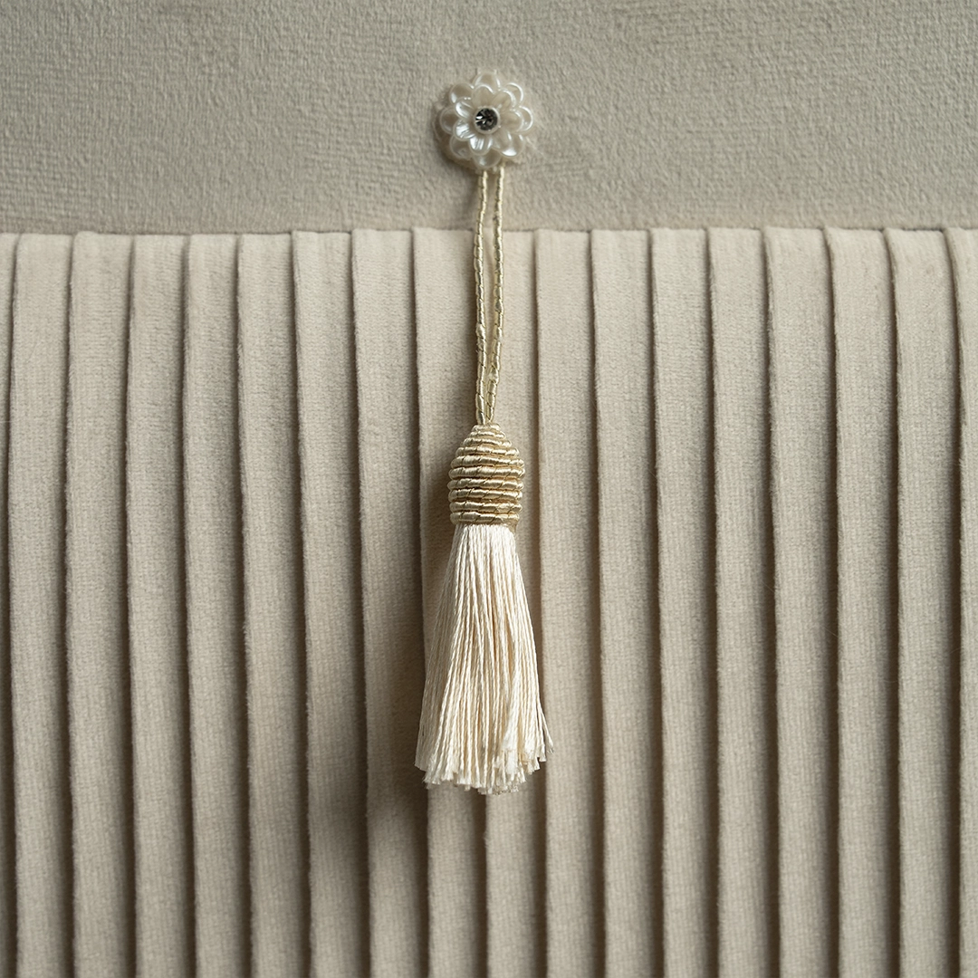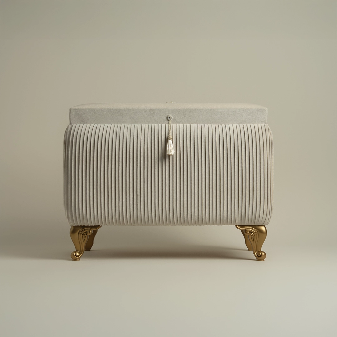 صندوق حفظ سجاد صلاة مخمل بيج. تصميم راقٍ، ملمس ناعم، وحماية مثالية لمكان عبادتكِ.