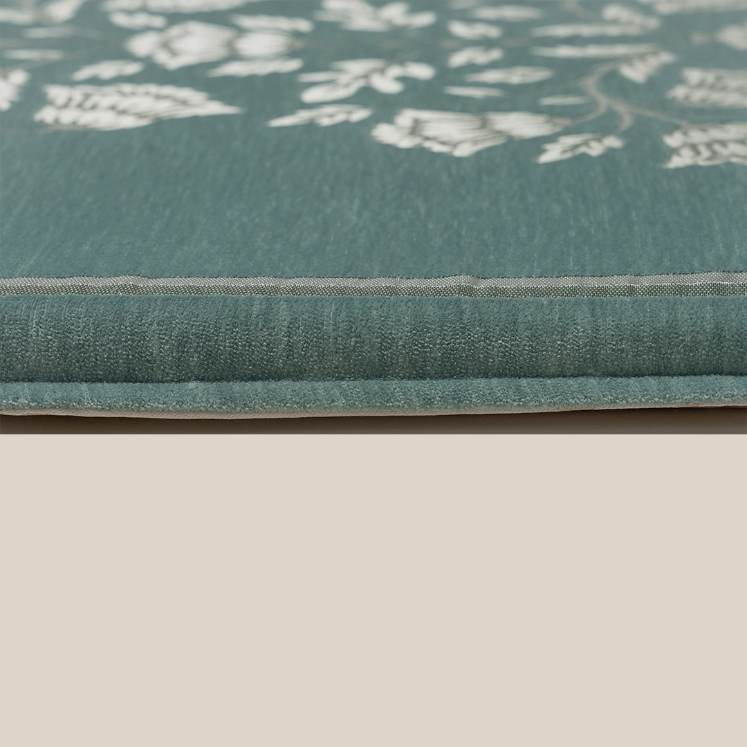 تتميز السجادة بحشوة ميموري فوم التي توفر دعمًا طبيًا للمفاصل (الركبتين والكاحلين) وامتصاص الضغط. السجادة مصنوعة من خامة الشنيل الناعمة الملمس والقوية في تحمل الاستخدام المتكرر.