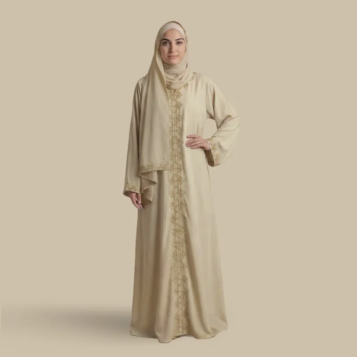 لباس صلاة مايكرو مطرز بيج غامق بسحاب من بيتي الصغير
